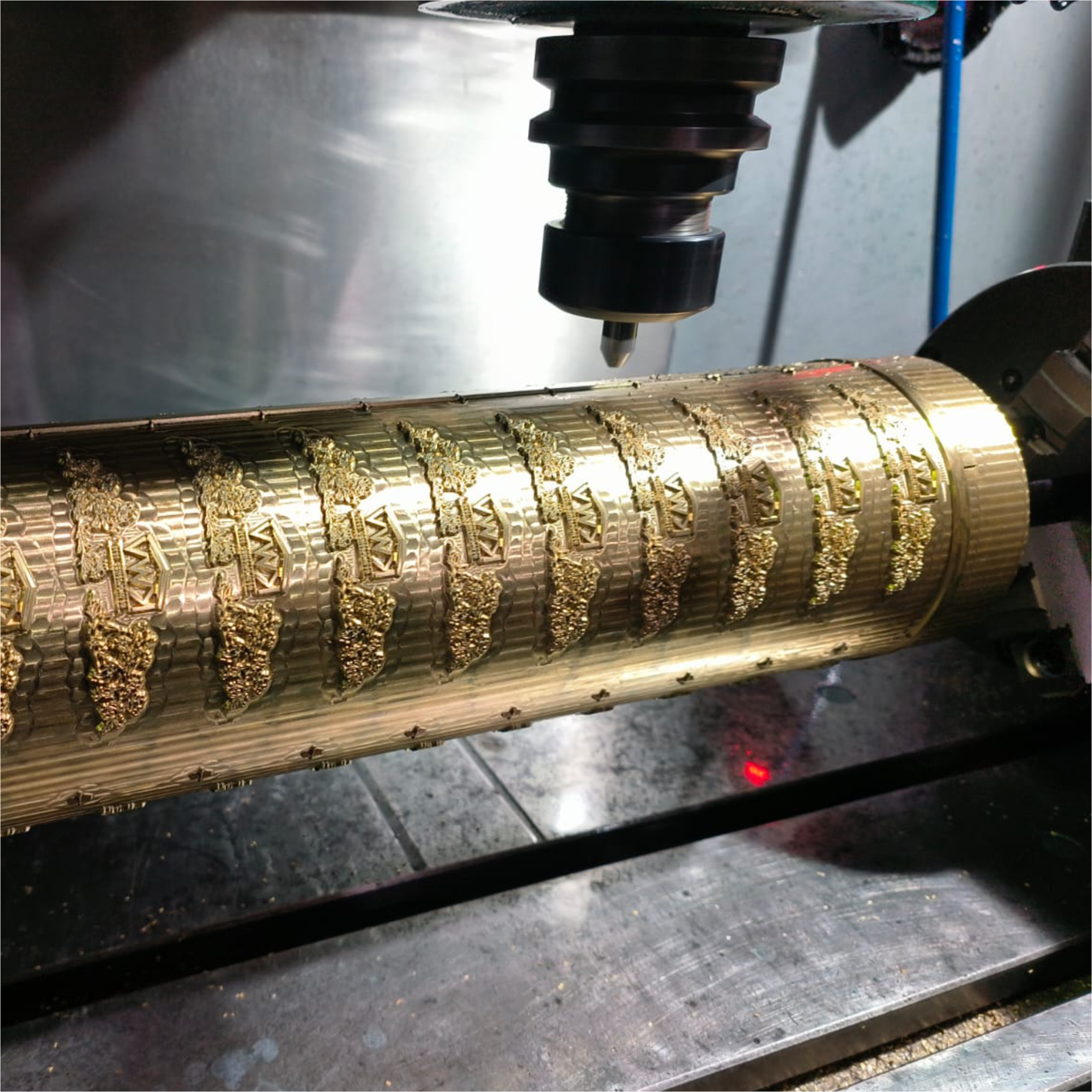 A brass cylinder used for hot foiling onto labels which are usually printed in big quantities.